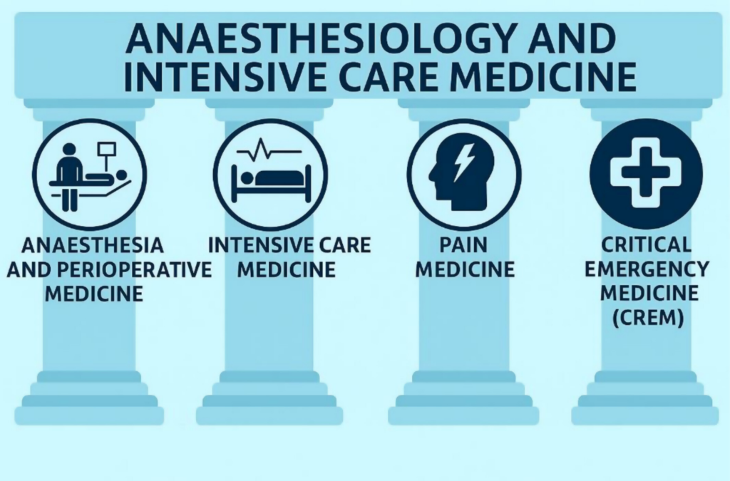 - kritische Notfallmedizin (Critical Emergency Medicine CrEM) hat Überschneidungen mit vielen anderen medizinischen Fachgebieten innerhalb der Anästhesiologie und Intensivmedizin