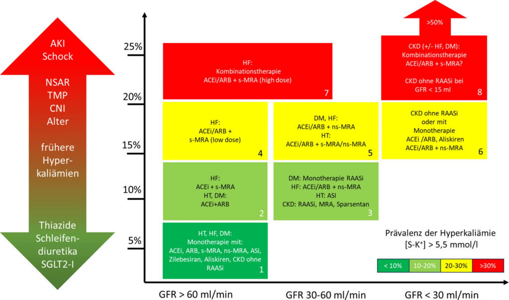 - Risiko einer Hyperkaliämie in Abhängigkeit von unterschiedlichen Risikofaktoren