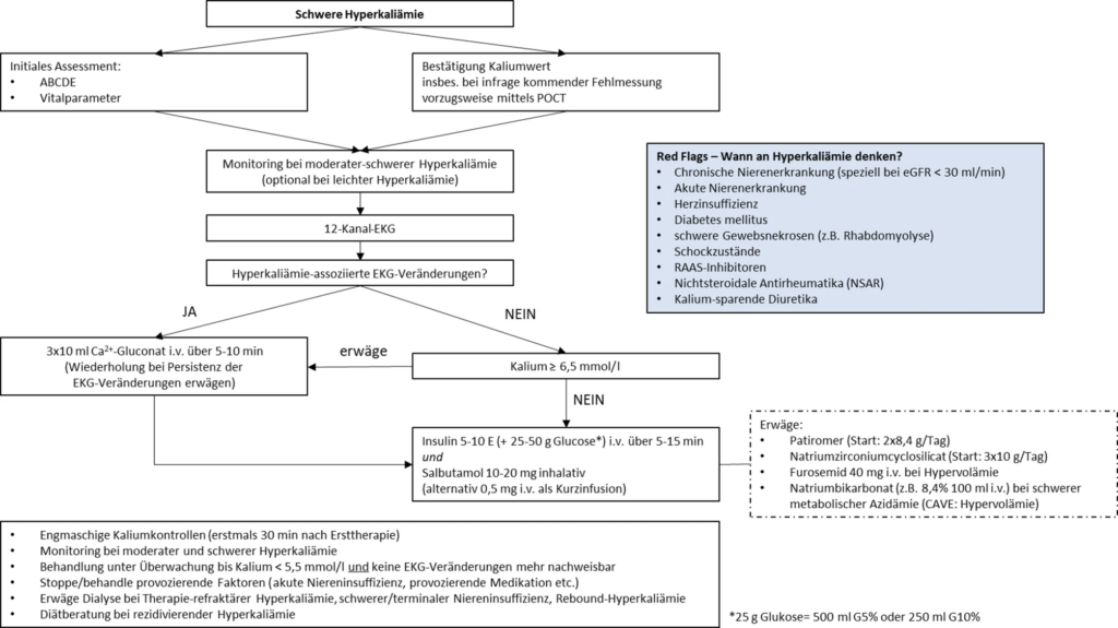 - CAVE: schwere Hyperkaliämie ist medizinischer Notfall aufgrund der Gefahr des Herztods durch Arrhythmien