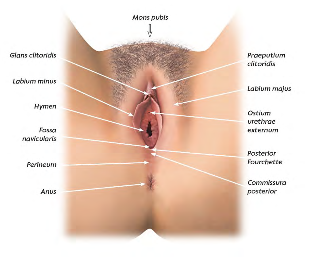 - einzelne anatomische Strukturen mit einer konsistenten Terminologie des Anogenitalbereiches genau aufführen (siehe Grafik)