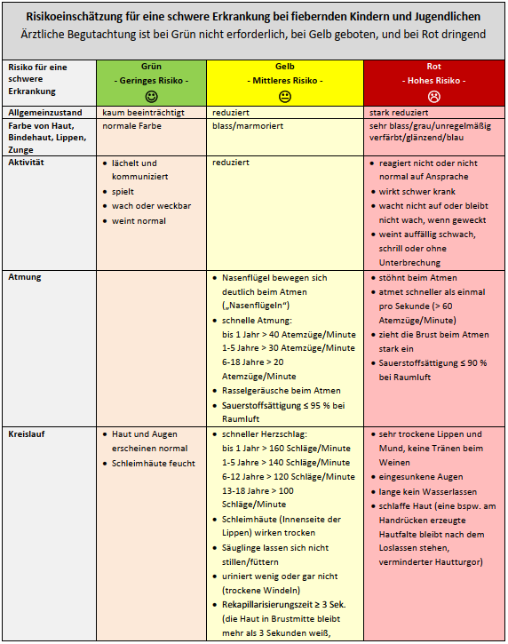 - Ampelsystem zur Risikoeinschätzung einer schweren Erkrankung bei fiebernden Kindern und Jugendlichen