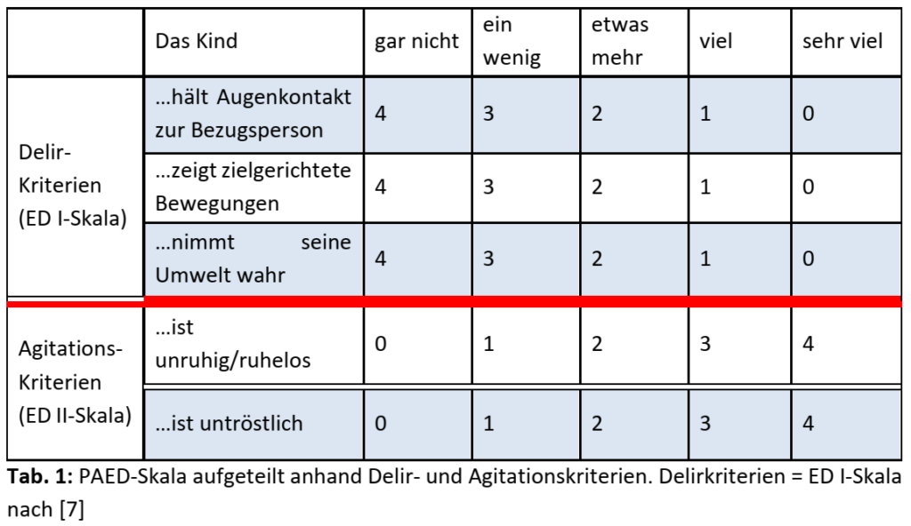 - Diagnose des pädED soll im Aufwachraum anhand einer validierten Skala stellen