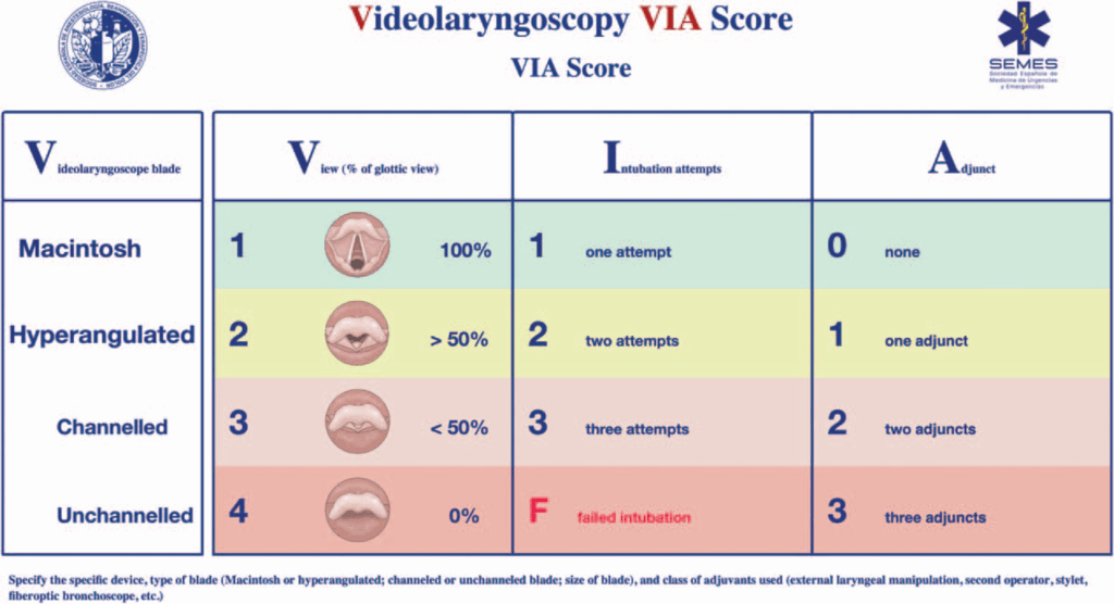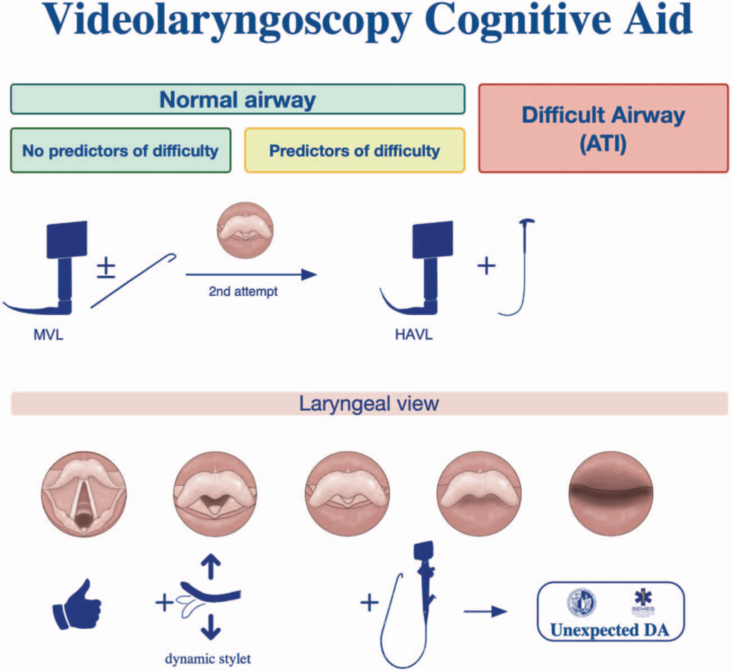 - routinemäßige Verwendung der Videolaryngoskopie (VL) anstelle der direkten Laryngoskopie (DL) als primäre Technik für die endotracheale Intubation (ETI) aufgrund der überlegenen Effektivität und Sicherheit