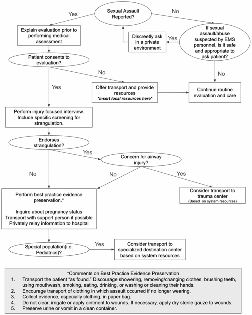 - Bewusstsein schaffen, dass sexuelle Übergriffe traumatische Ereignisse sind und ein trauma-informierter Behandlungsansatz gewählt werden soll (z.B. Fragen, die die Erfahrungen der Betroffenen bestätigen, Einholen der Zustimmung vor Untersuchung, um die Entscheidung des Patienten zu respektieren, und die Erlaubnis, während der körperlichen Untersuchung eine Begleitperson hinzuzuziehen)